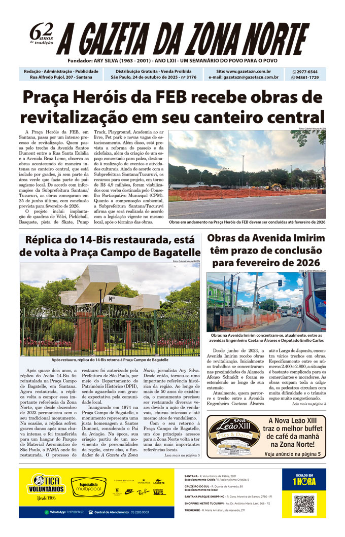 Anuncie: Whatsapp: 2977-6544 e 94861-1729. O mais eficiente veículo de divulgação. Publicação semanal online e distribuição quinzenal às sextas-feiras nos principais bairros da Zona Norte de São Paulo. Distribuição gratuita em bancas, prédios comerciais e residenciais, condomínios, clubes, imobiliárias, padarias e shoppings. 62 anos de tradição.